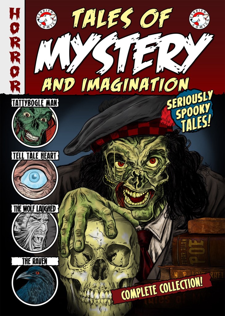 Poe’s classic tales, including “The Tell-Tale Heart,” “The Raven,” and “The Conqueror Worm,” are adapted. Additionally, that other master of fear, H. P. Lovecraft, is represented by adaptations of his atmospheric “Dagon” and terrifying “From Beyond.”Following in the grand tradition of EC Comics, these timeless tales of madness and monsters are given a new and vibrant lease on life, with a strong and eclectic mix of art styles. Where EC had the Crypt Keeper, Terrier Comics introduces the Tattybogle Man—a very Scottish fearmonger who relishes in telling tales of terror and even appears in one or two himself.