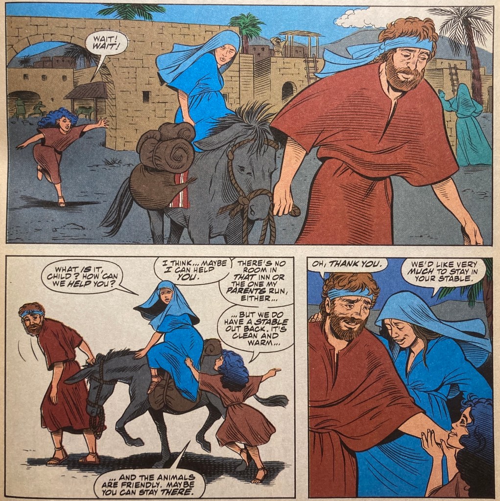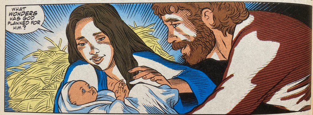 Today, we’re going to look at The Life of Christ: The Christmas Story, published by Marvel Comics in 1993 and distributed by Thomas Nelson publishers. Heavy spoilers will follow, but the story is probably familiar to many of you, anyway, right? (If not, you’re roughly two thousand years late to the Christmas party)