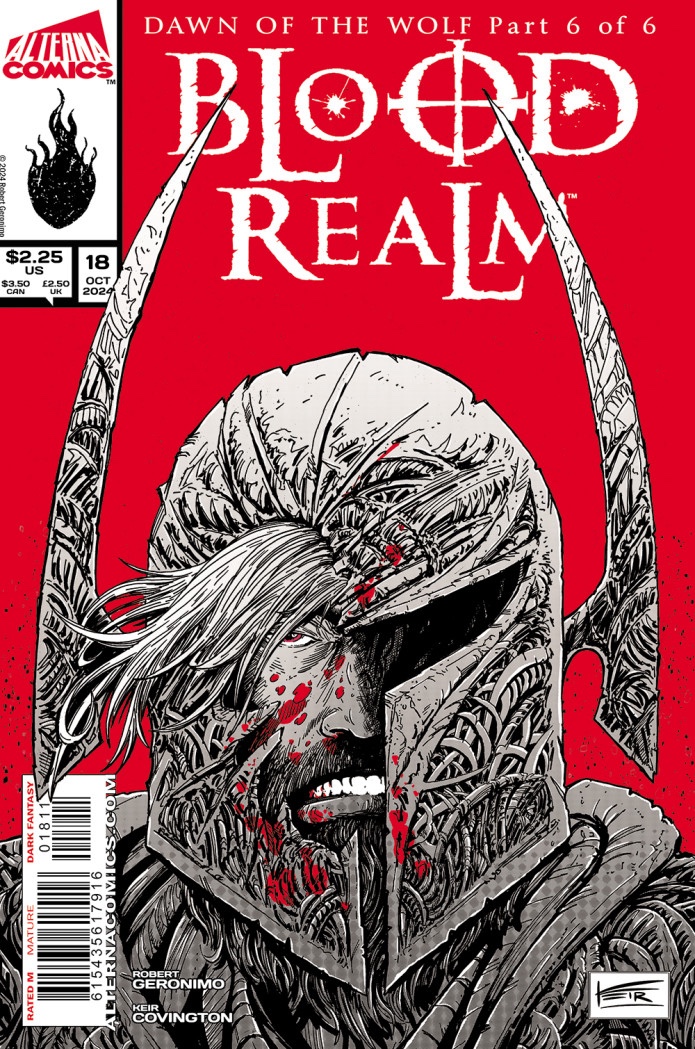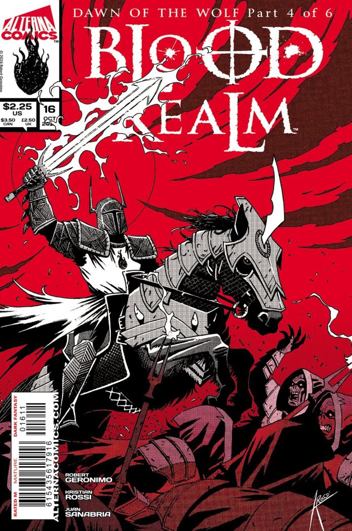 Written by Geronimo and featuring illustrations by Kristian Rossi, Juan Sanabria and Keir Covington, these four issues of Blood Realm represent the conclusion of the Dawn of the Wolf story arc.